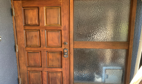 | 外壁・屋根塗装だけでなく多くの付帯部分塗装の他、外構工事も任せていただけました。木製の玄関ドアは、色の調整をお客様のご要望を伺いながら行い風合いのあるドアに仕上がりました。下地処理に自信を持つ工藤建装こだわりの工事です。 | |